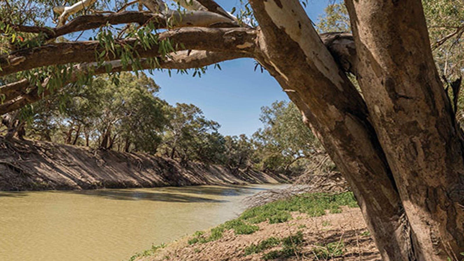 The iconic black box trees on the banks of Menindee Lakes